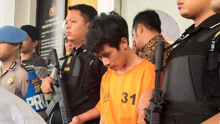 Jakarta, KANALSUMATERA.com - AS atau Adi Saputra (21) berbaju tahanan oranye dengan nomor 31 di dada kiri. Kepalanya tertunduk dan tangannya diborgol.
